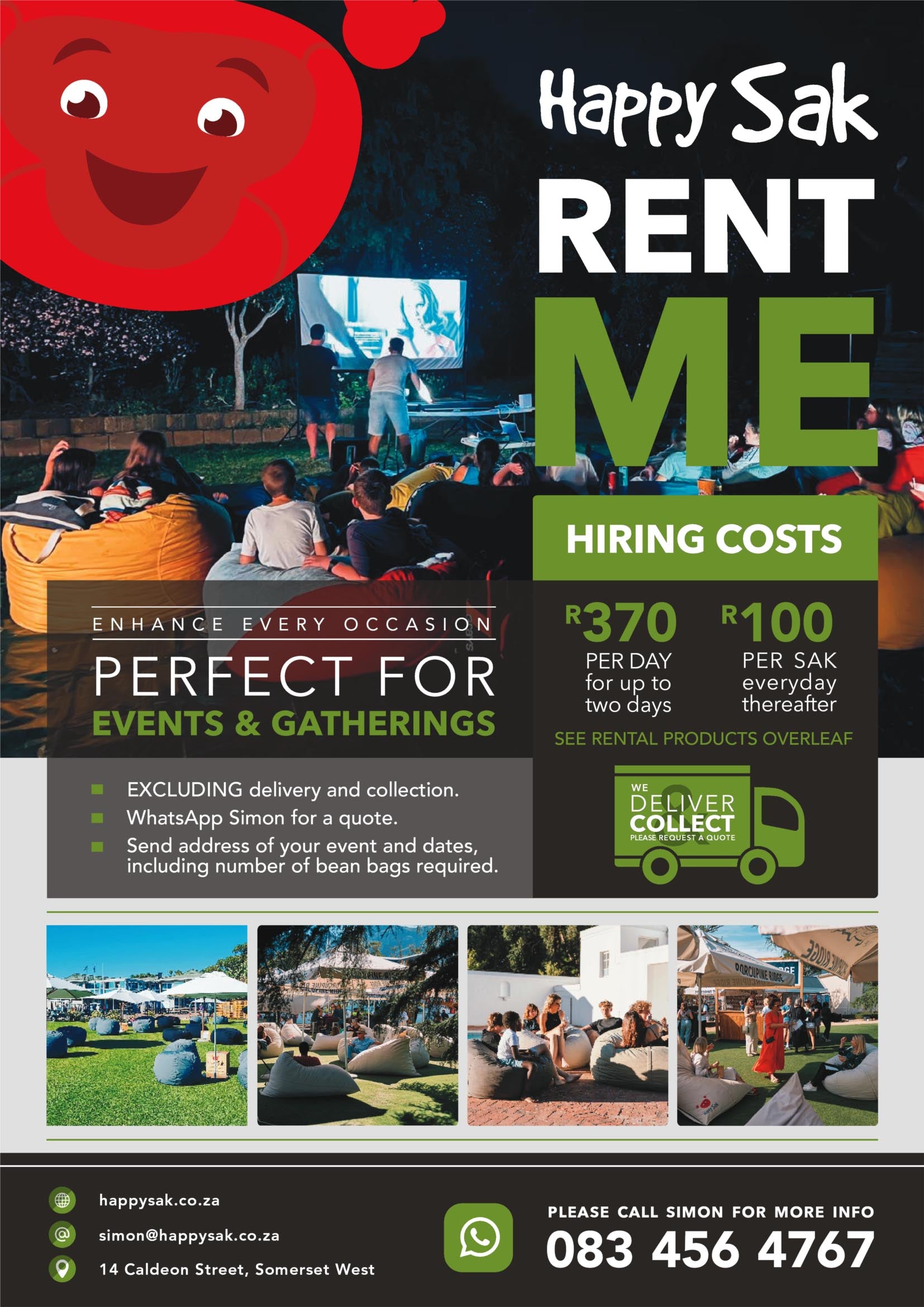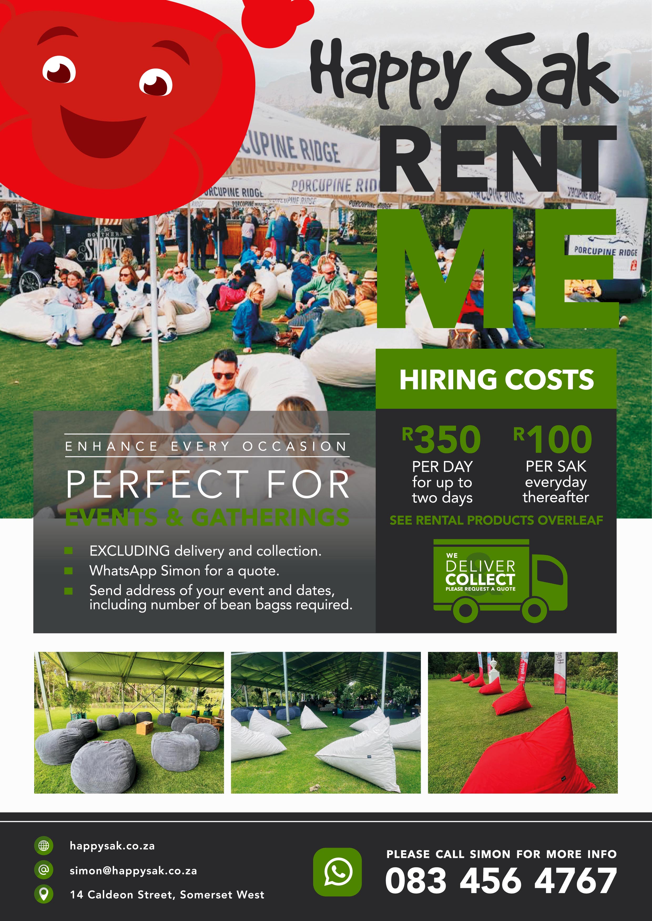 We have large saks in a huge range of colours to suit both indoor and outdoor events from corporate functions, product launches and activations to festivals, exhibitions, movie nights, picnics, birthday celebrations, kiddies’ parties, weddings and more – you name it, we’ve done it!